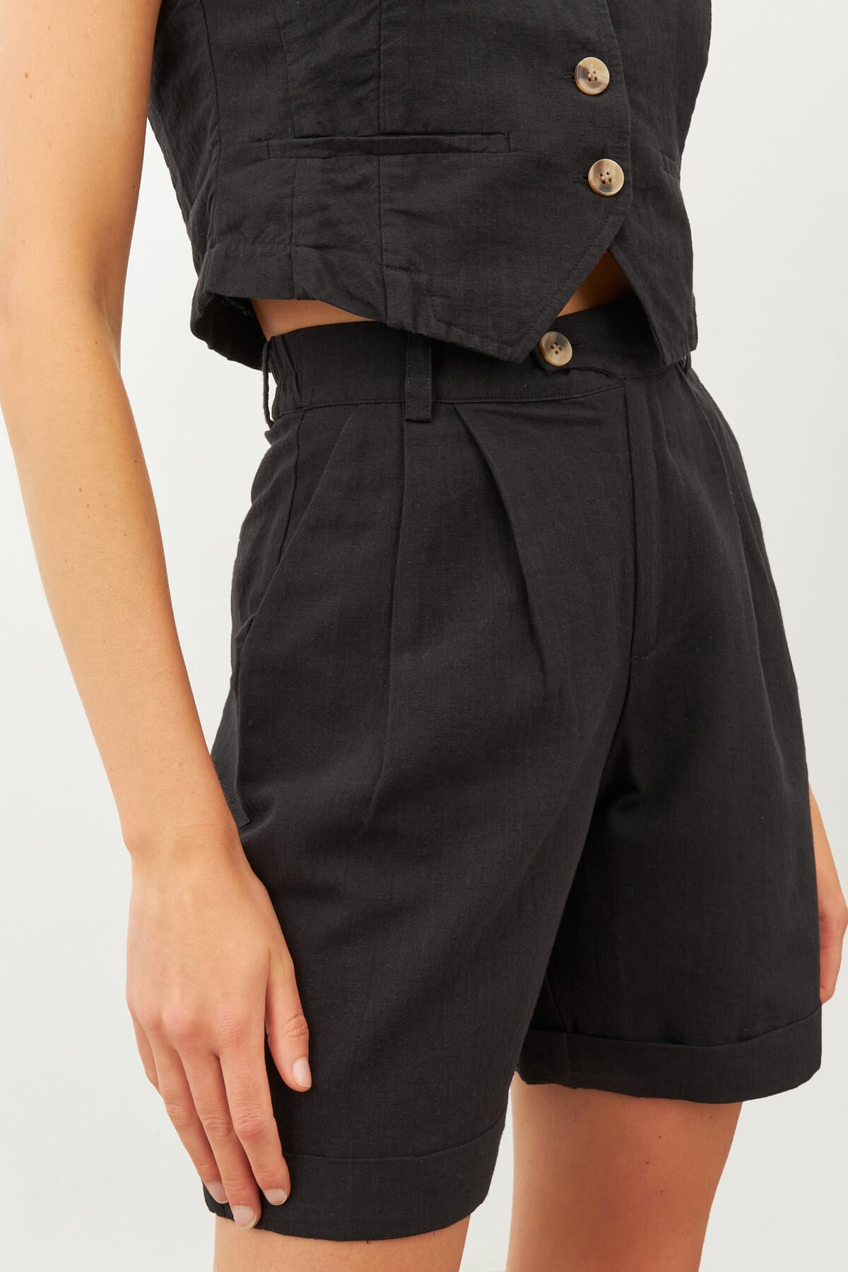 Black Elasticated Waist Linen Shorts (SPN23-030-00100134)