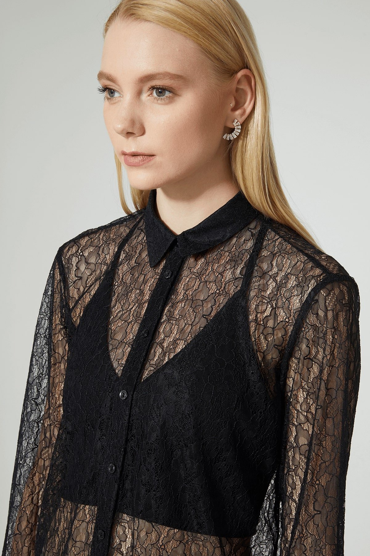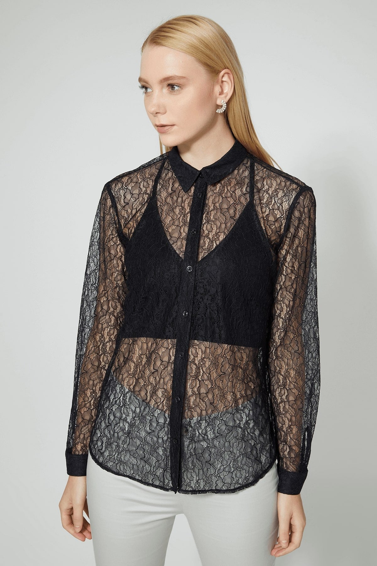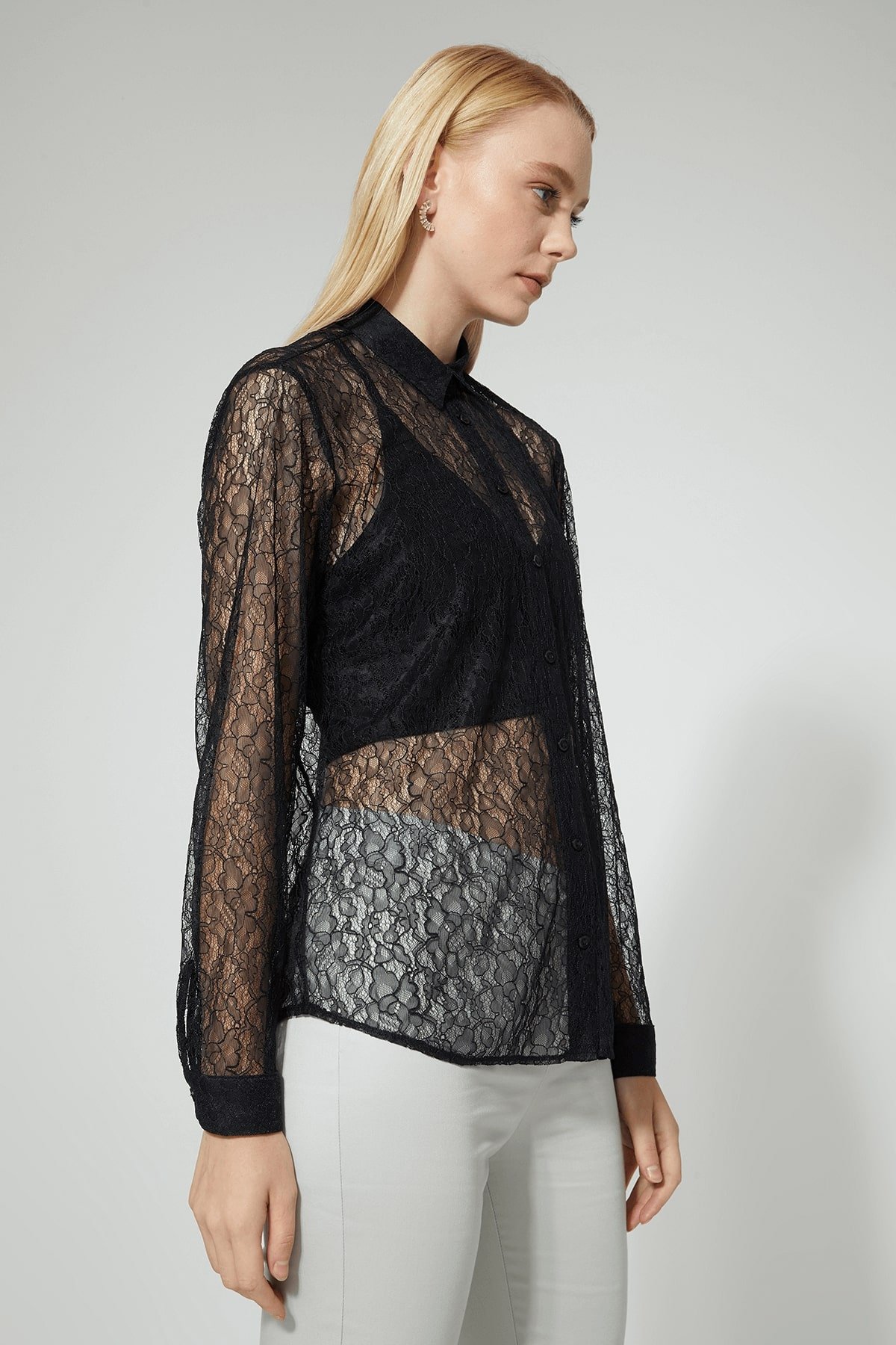 Black Lace Detailed Shirt