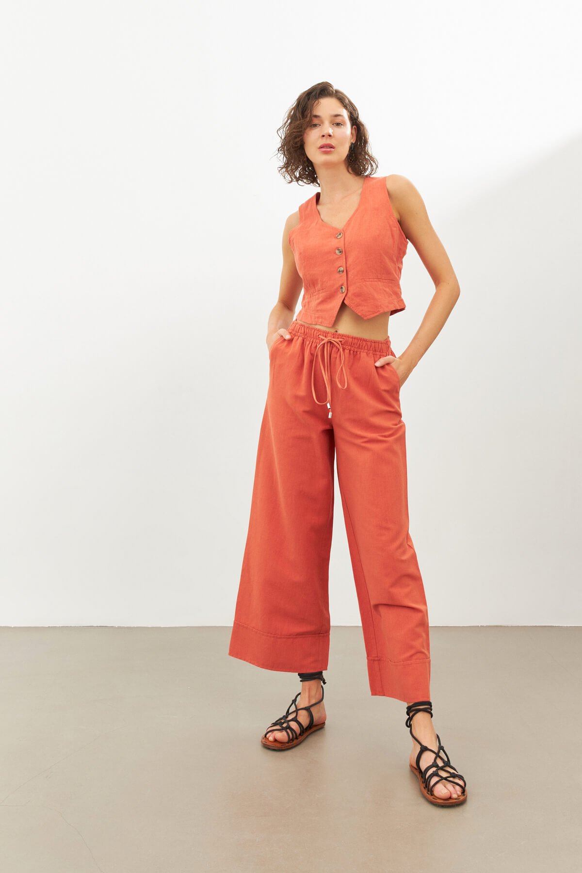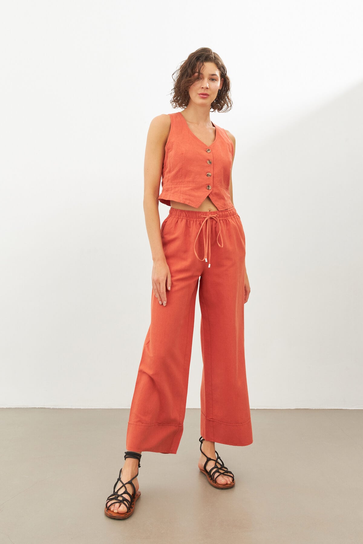 Brick Color Linen Vest (SPN23-039-01101134)