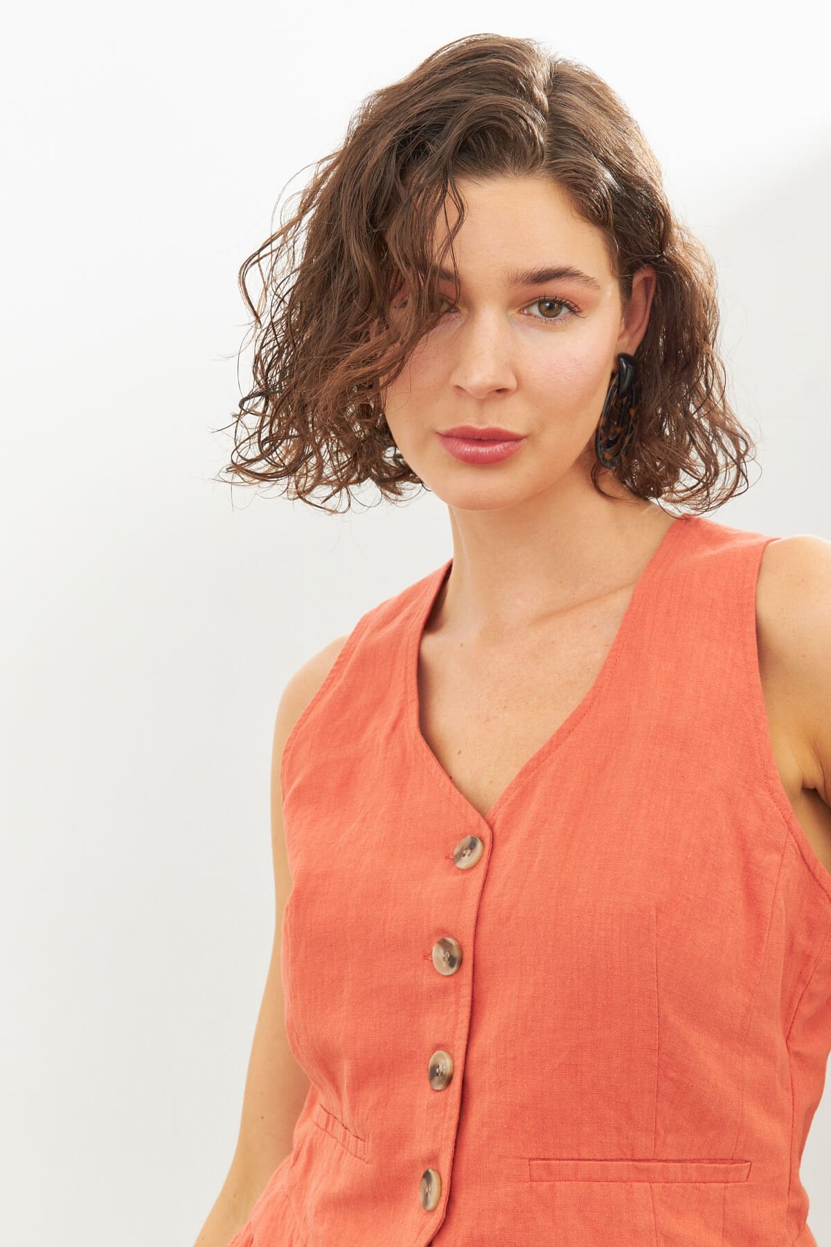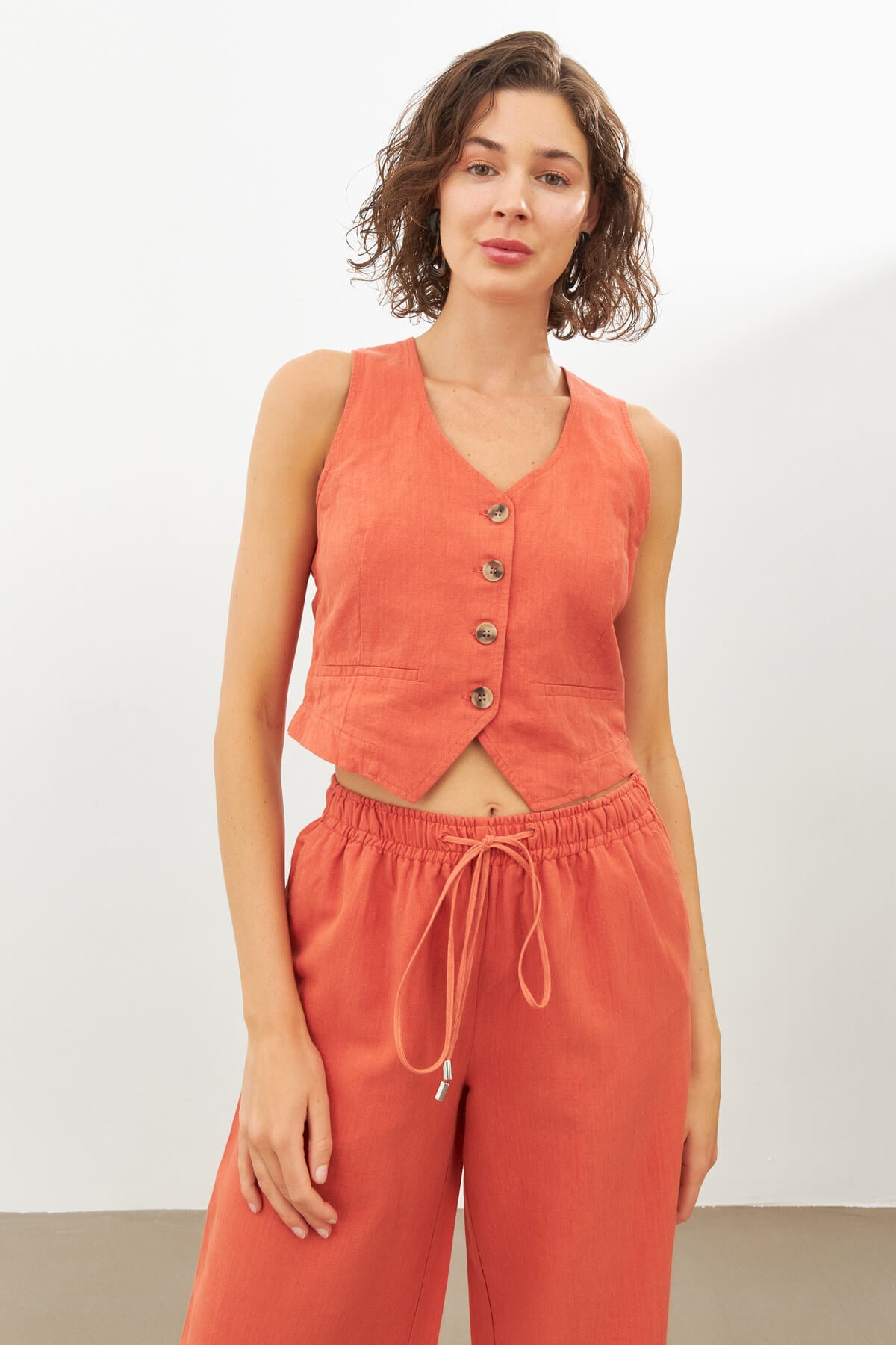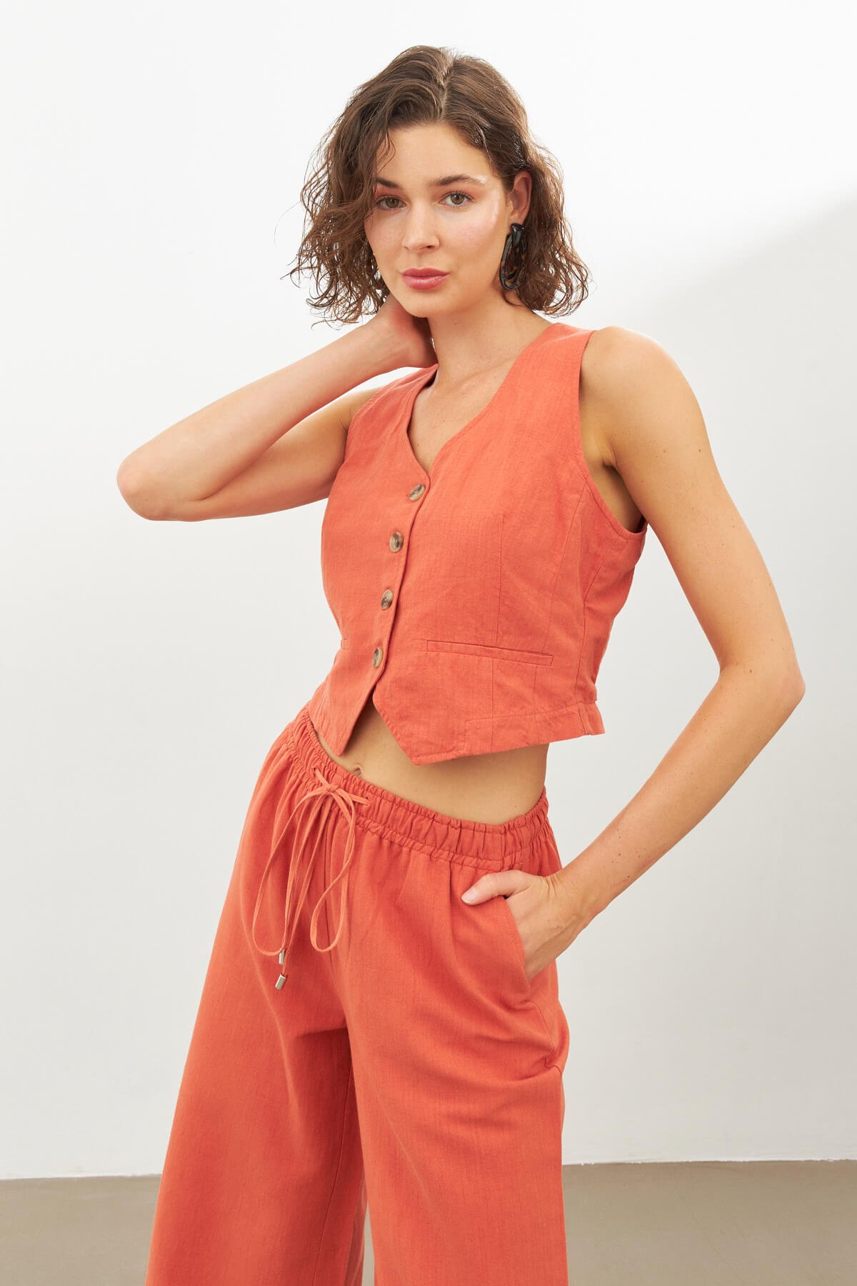 Brick Color Linen Vest