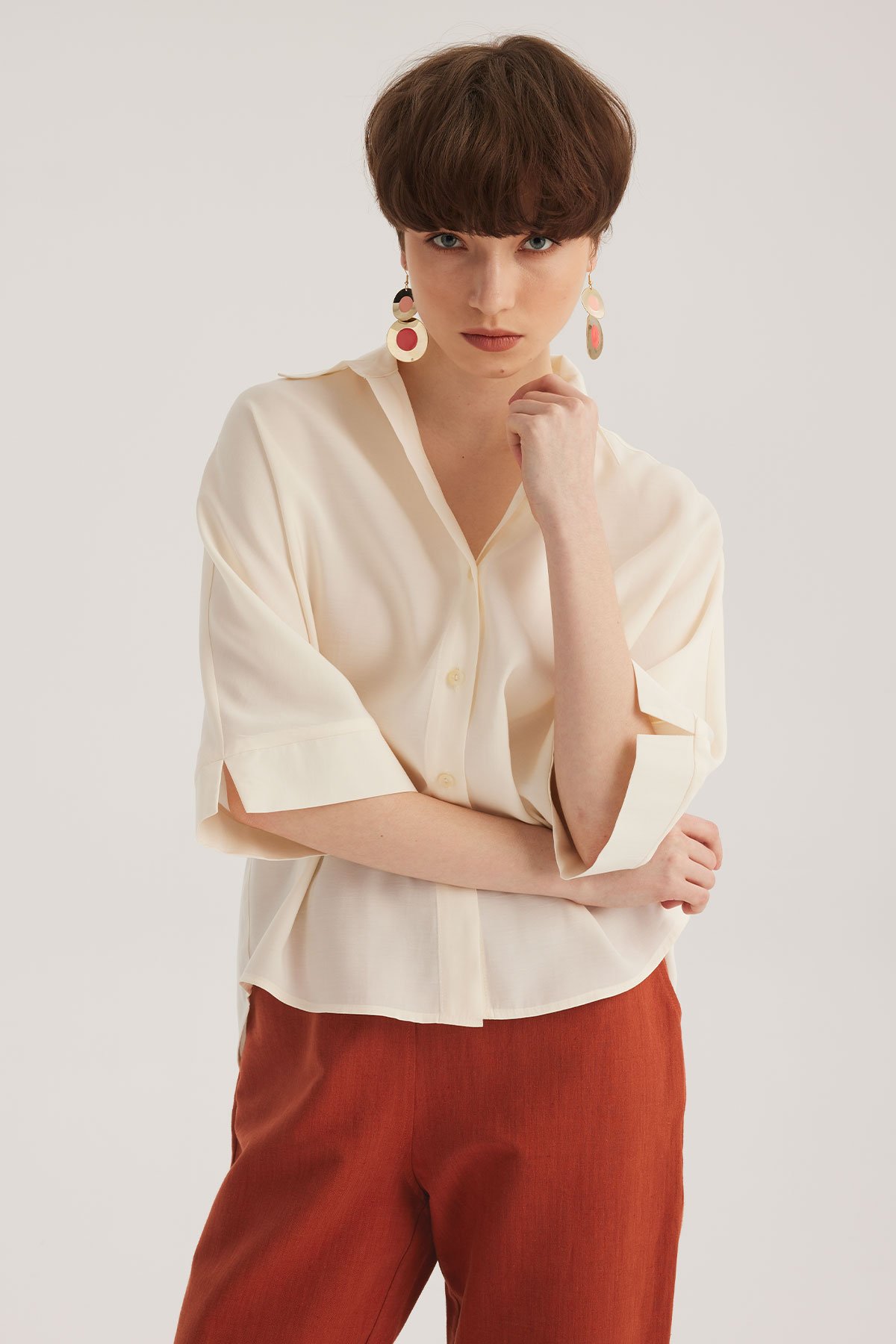 Ecru Bat Sleeve Modal Shirt