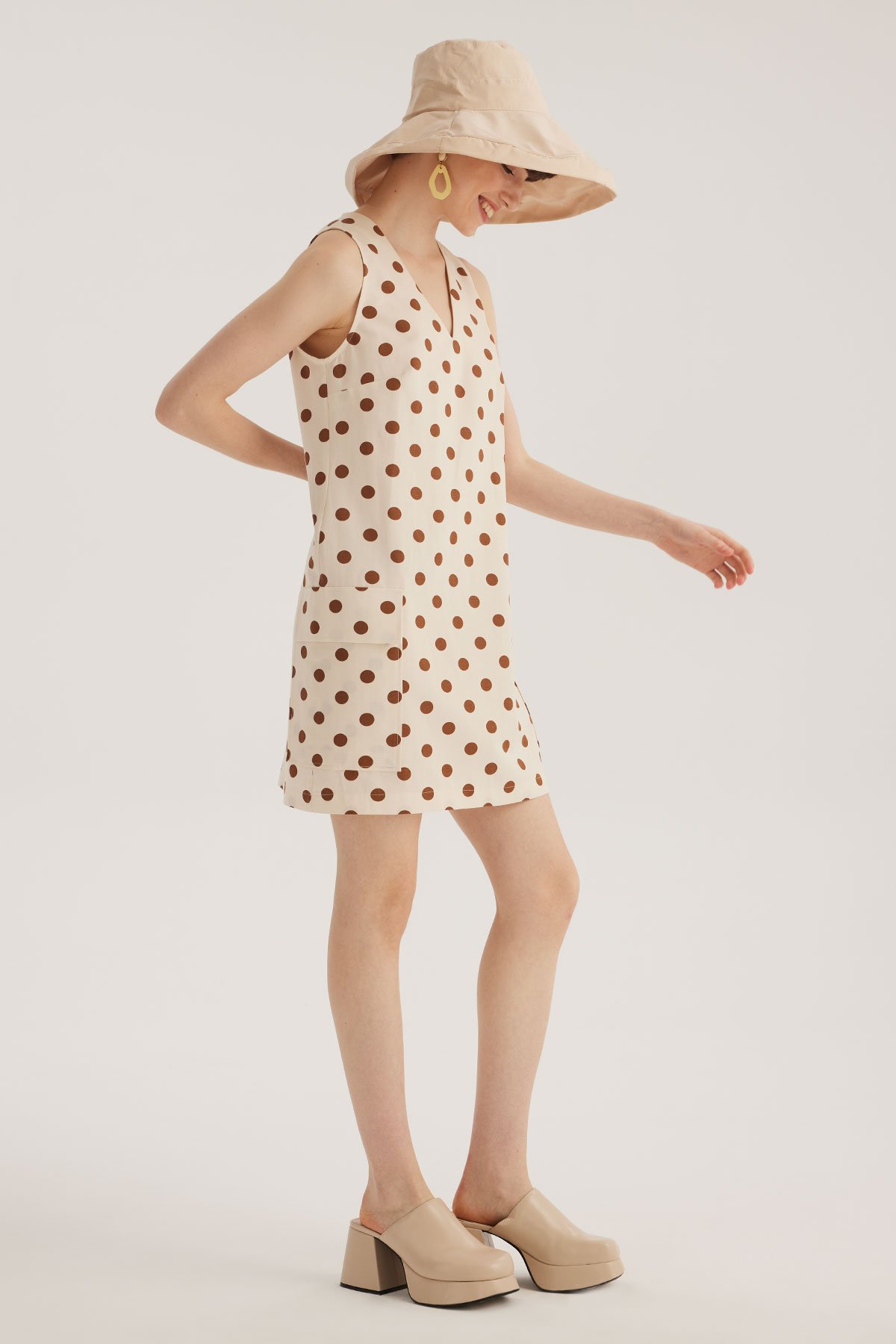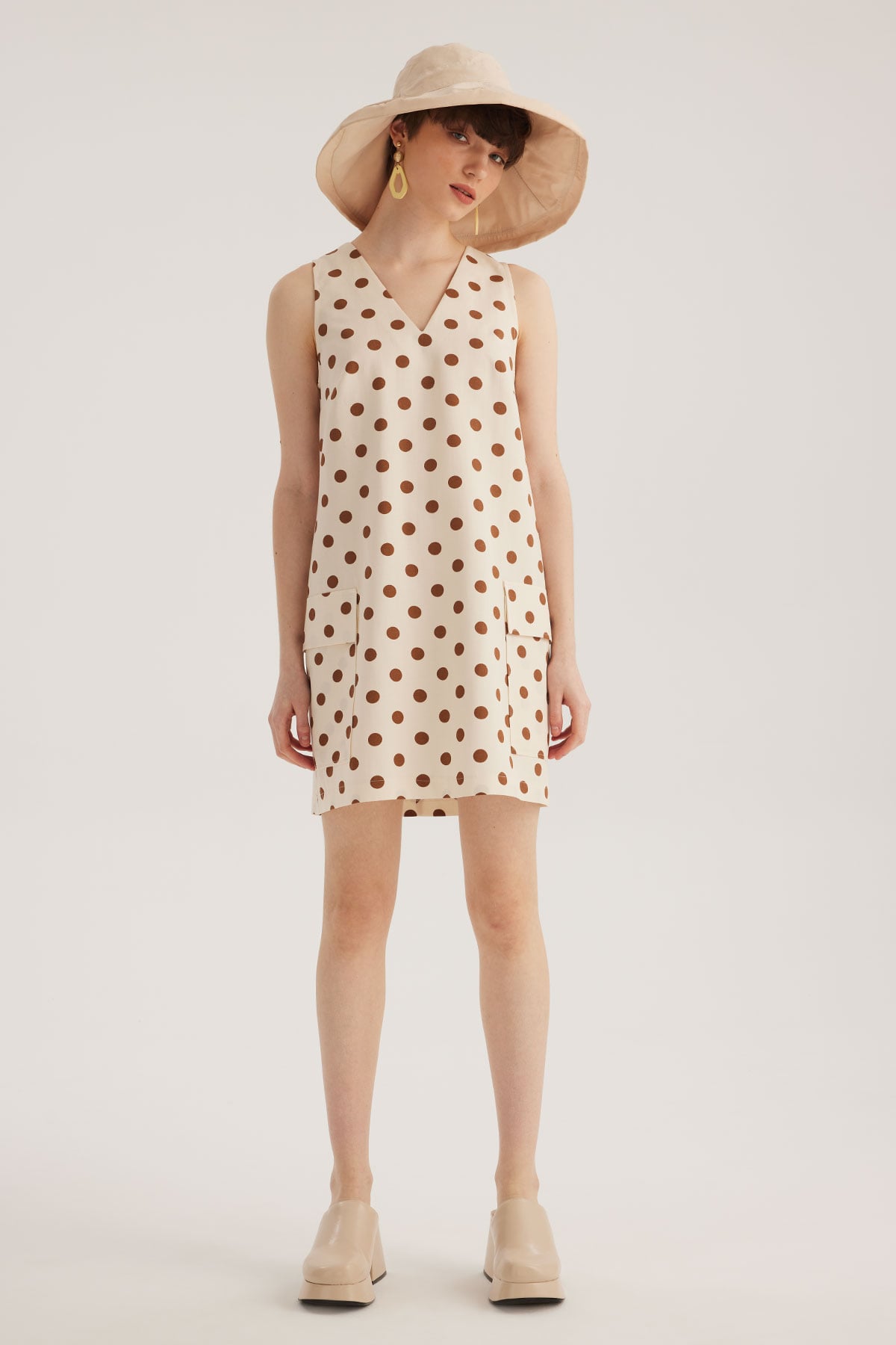 Ecru Polka Dot V-Neck Mini Dress (SPN23-773-00600634)