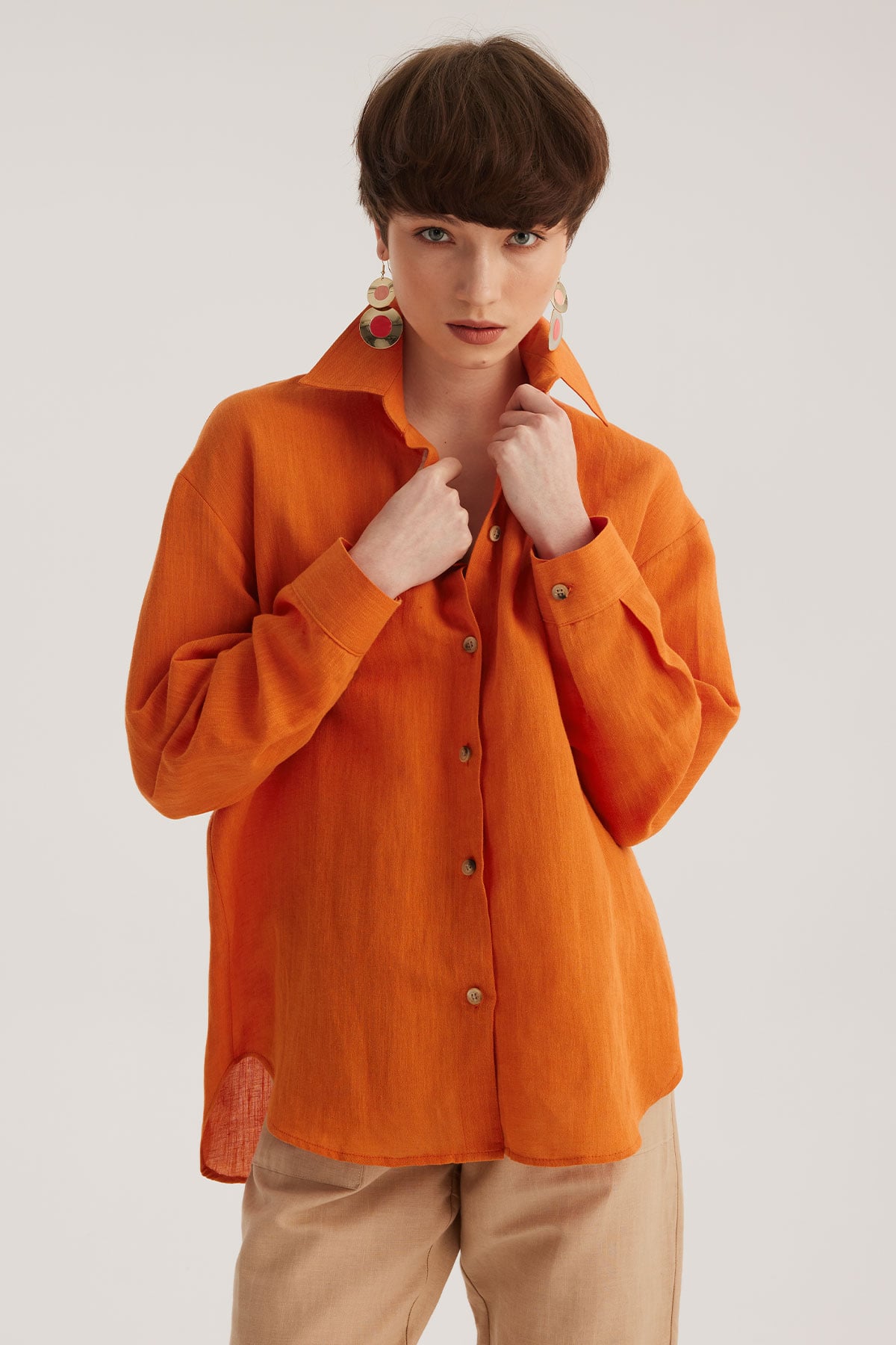 Orange Linen Blend Oversize Shirt (SPN23-755-01001034)
