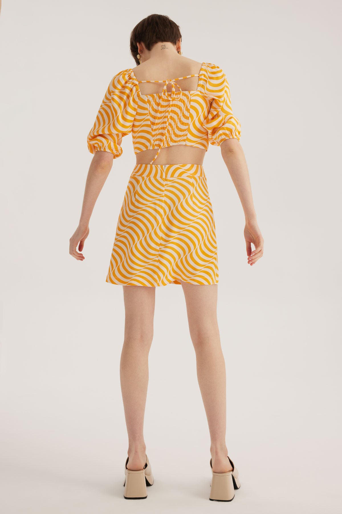 • Model Measurements: Height: 174 cm, Chest: 87 cm, Waist: 60 cm, Hip: 89 cm.
